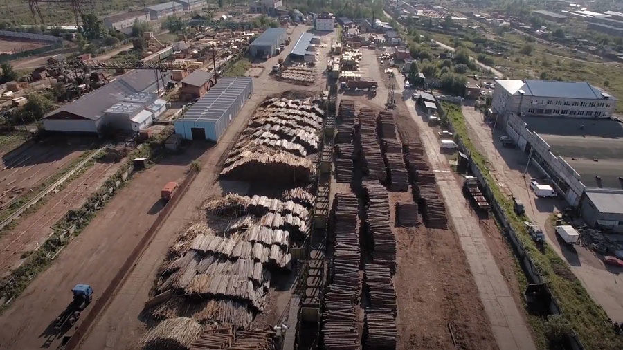 Роскошный Porsche медленно движется мимо ржавых погрузчиков, потрепанных бытовок, разбросанных покрышек и не поддающихся подсчету груд бревен. За рулем автомобиля — Евгений Бакуров, он снимается в промо-ролике для продвижения своего бизнеса.