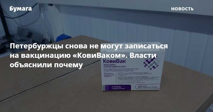 Петербуржцы снова не могут записаться на вакцинацию «КовиВаком». Власти объяснили почему