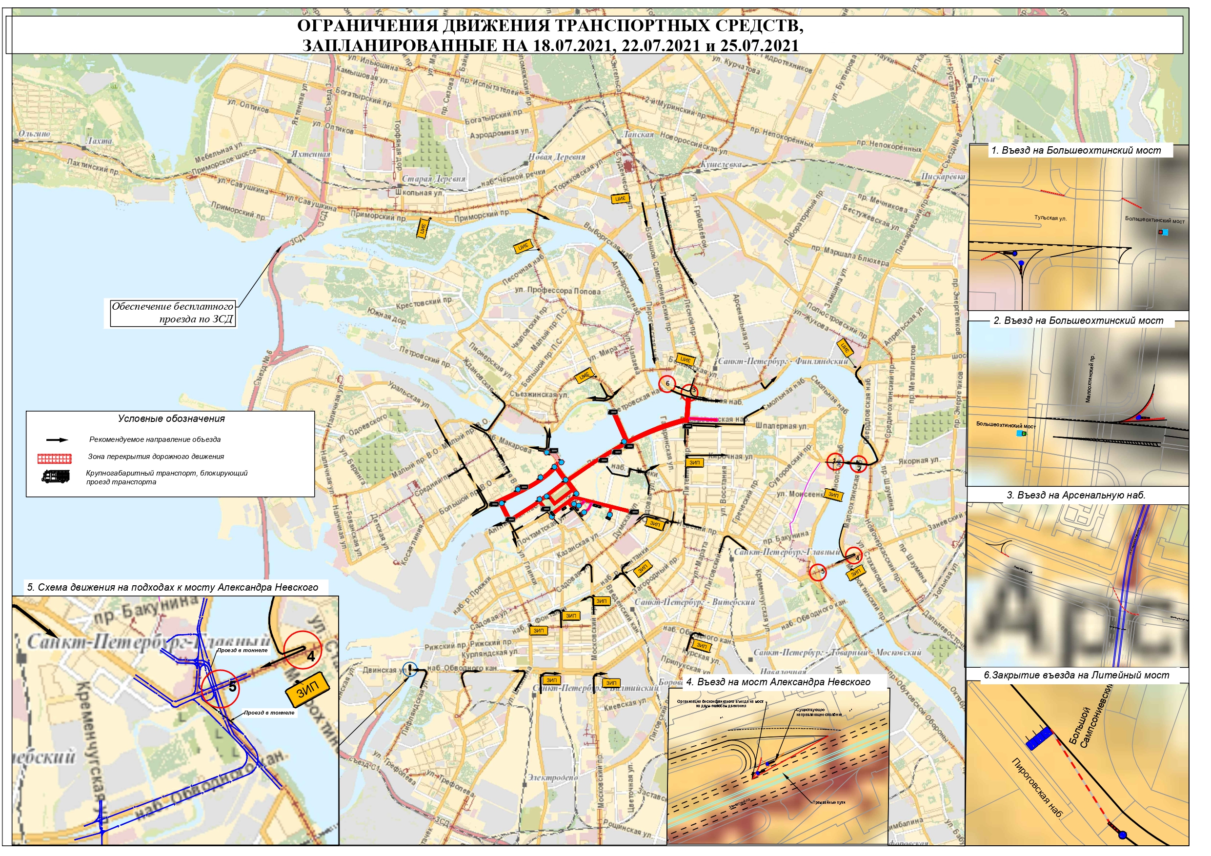 2. С 00:00 17 июля до 06:00 29 июля — по Адмиралтейской набережной.