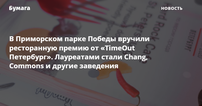 В Приморском парке Победы вручили ресторанную премию от «TimeOut Петербург»