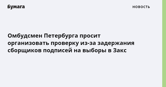 Омбудсмен Петербурга Александр Шишлов обратился к главе регионального отделения МВД из-за задержания сборщиков подписей. Речь идет о волонтерах, которые работали на кандидатов в депутаты Заксобрания Марину Мацапулину, Ирину Фатьянову и Савву Федосеева.