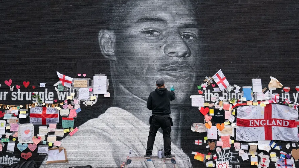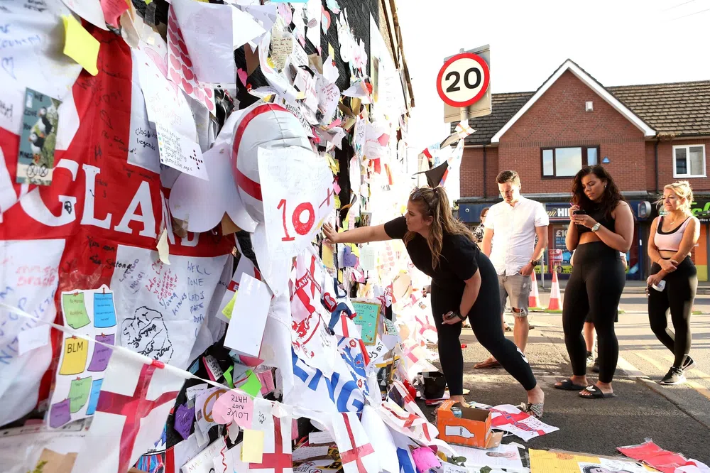 Через час после поражения англичан неизвестные синей краской расписали граффити с изображением Маркуса Рашфорда в пригороде Манчестера, недалеко от места, где вырос футболист. Но очень быстро жители завесили позорные надписи флагами, записками и письмами поддержки, и вскоре стена превратилась в живой памятник солидарности.
