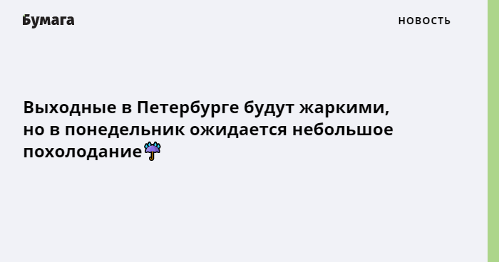 Небольшое похолодание, которого так ждали петербуржцы, придет в понедельник. По прогнозу, в этот день будет до +26 градусов. Синоптики также ожидают грозы, кратковременные дожди, местами ливни.