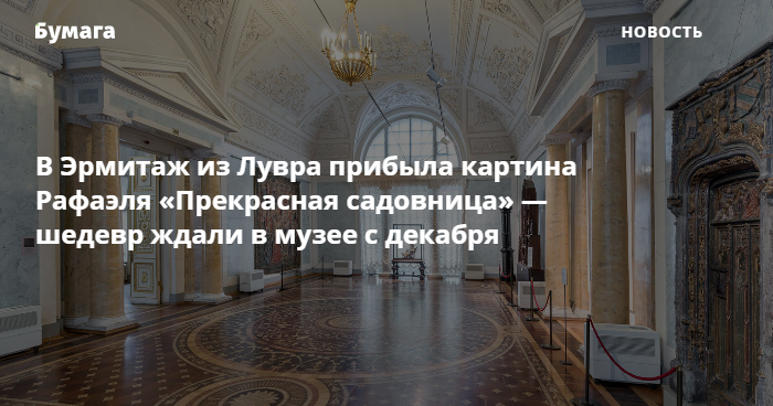 Эрмитаж на выставке одной картины покажет произведение Рафаэля «Прекрасная садовница». Шедевр должен был стать экспонатом выставки «Линии Рафаэля» в декабре 2020 года, но тогда его не смогли доставить из Франции из-за коронавирусных ограничений.