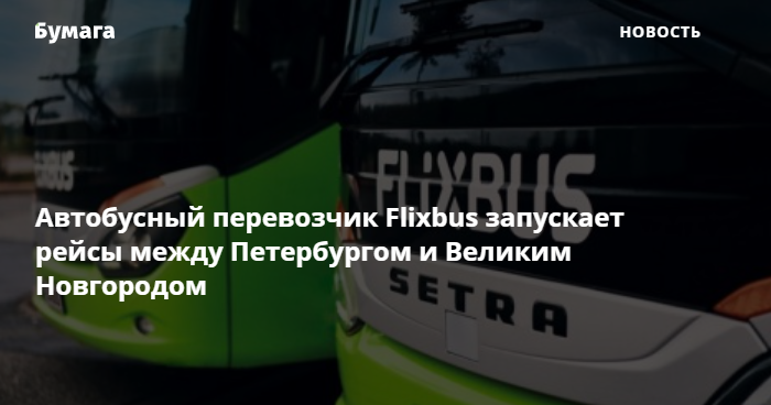 Крупнейший европейский автобусный перевозчик Flixbus начинает работу в России и 23 июля запускает рейсы между Петербургом и Великим Новгородом. Об этом сообщается в группе компании во «ВКонтакте».