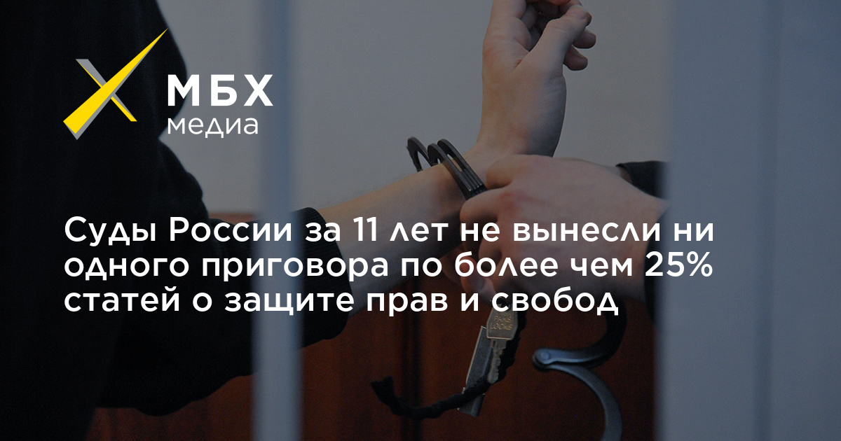Суды России за 11 лет не вынесли ни одного приговора по более чем 25% статей о защите прав и свобод
