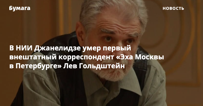 В Петербурге умер журналист издания «Эхо Москвы» Лев Гольдштейн. Об этом сообщил главный редактор «Эха Москвы в Петербурге» Валерий Нечай в своем фейсбуке.