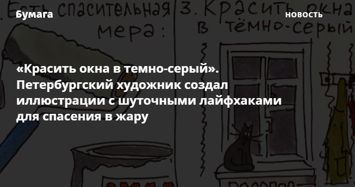 Петербургский художник Илья Тихомиров создал серию иллюстраций с шуточными рекомендациями, которые должны помочь горожанам спастись от жары. Например, автор предлагает завести в парки и скверы горы льда, чтобы вернуть привычную слякоть.