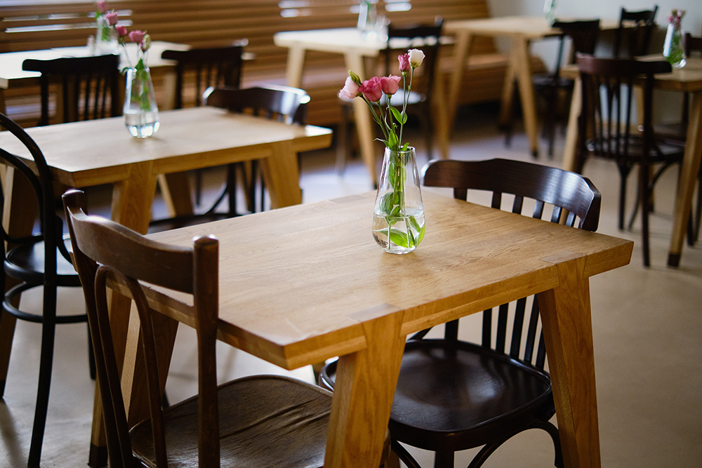 В «Искре» минималистичный интерьер, на столиках расставлены вазы со свежими цветами. Благодаря открытой кухне можно наблюдать за процессом приготовления. Здесь подают больше 20 видов пиццы, среди которых — блюда с пепперони, с лососем, с грушей и горгонзолой.