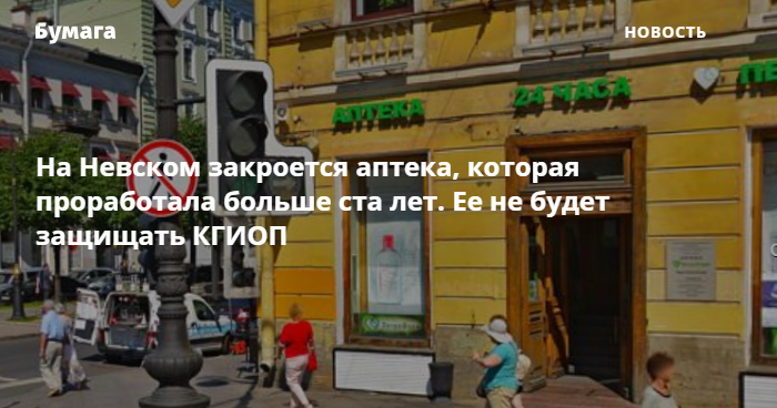 На Невском закроется аптека, которая проработала больше 100 лет. Ее не будет защищать КГИОП