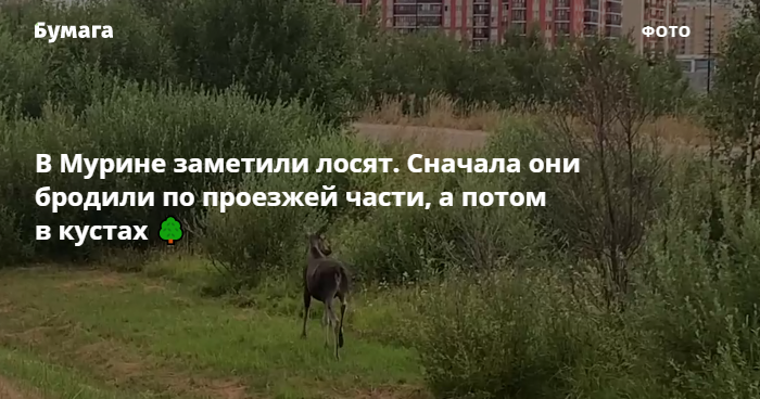 Утром 20 июля в Мурине заметили двух лосят, которые бродили по дороге, а затем убежали в кусты. «Бумага» показывает фотографии с животными.