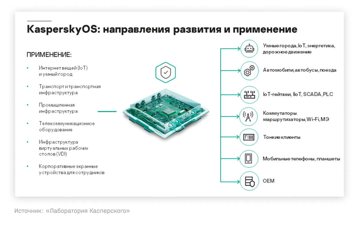 Специалисты «Лаборатории Касперского» с нуля создали систему, которая объединяет в себе все эти принципы. KasperskyOS обеспечивает кибериммунность — «врожденную» защиту от большинства кибератак и способность противостоять как существующим, так и еще не известным угрозам.
