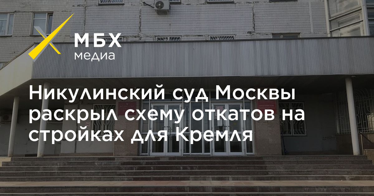 Никулинский суд Москвы раскрыл схему откатов на стройках для Кремля