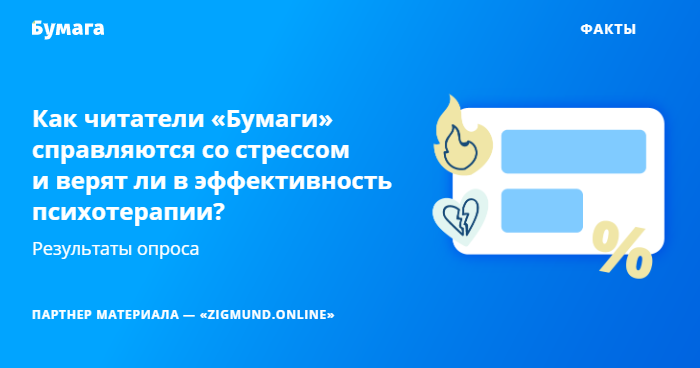 Отдел исследований «Бумаги» вместе с сервисом онлайн-психотерапии ZIGMUND.ONLINE провел опрос об эмоциональном состоянии читателей и их отношении к психотерапии. «Бумага» публикует результаты исследования.