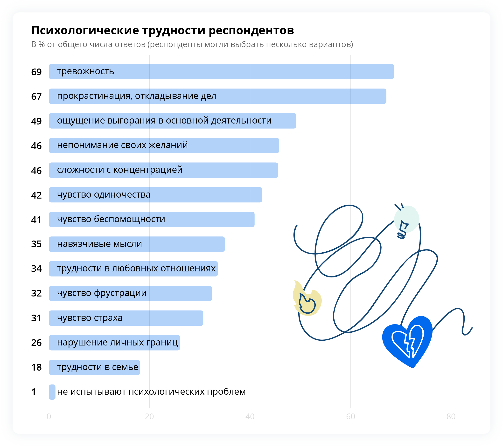 Основные психологические трудности респондентов — тревожность и прокрастинация