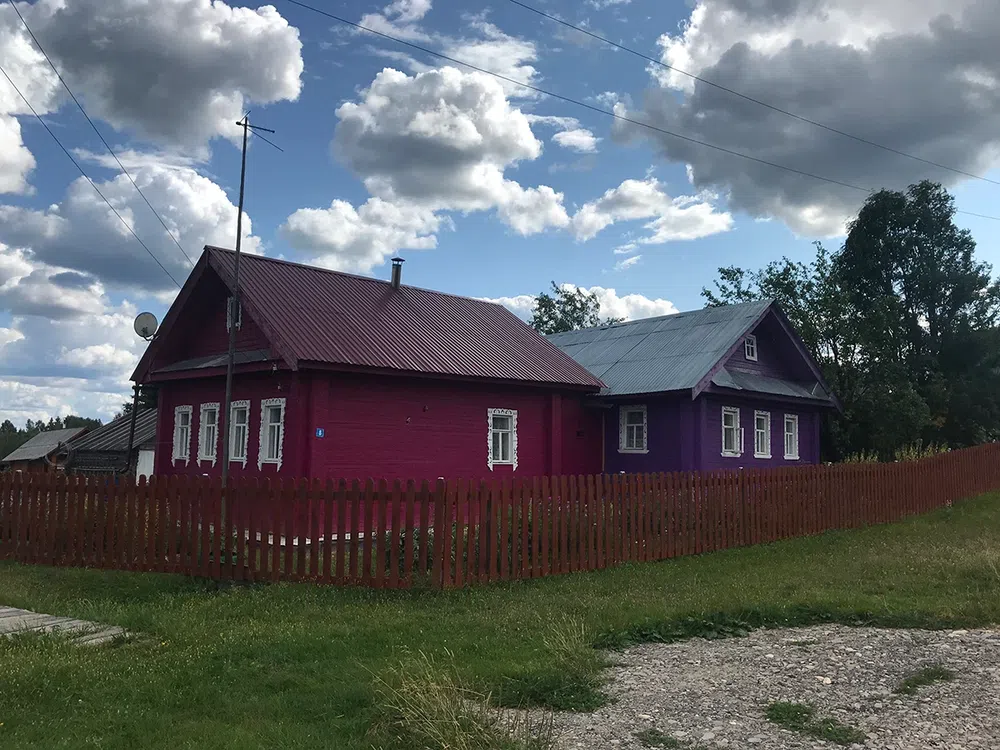 Третий по счету дом от шлагбаума недавно покрашен в ярко-лиловый цвет, на окнах резные белые наличники. Вдоль забора медленно, тяжело дыша ковыляет на артритных ножках всклокоченная белая собака. Слезящиеся глаза опустила к сухой траве.