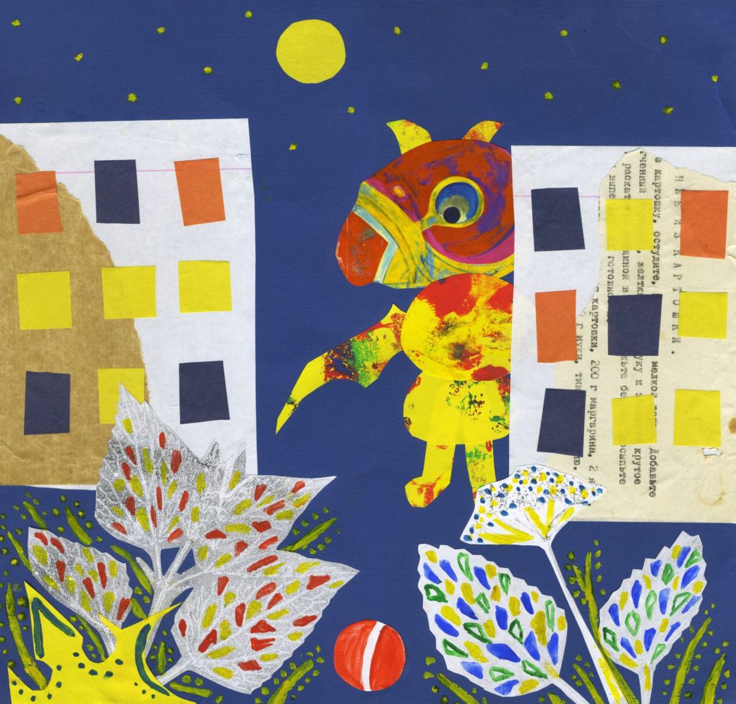 Мне стало интересно, не сошла ли я с ума: тридцатилетняя женщина, сижу и шуршу бумажками, сводя в одной картинке пингвинов, вентилятор и какого-то пловца. А ведь я не умею ни рисовать, ни лепить. В детстве маме пришлось забрать меня из художественного кружка, потому что вместо рисования я пела басом арию Гремина из оперы «Евгений Онегин». Следующие десять лет я провела в хоре. В музучилище меня не взяли, и я стала редактором и журналистом. Какие уж тут художества. И вдруг — коллажи. Я стала гуглить, нормально ли это. Оказалось, да, такое бывает.