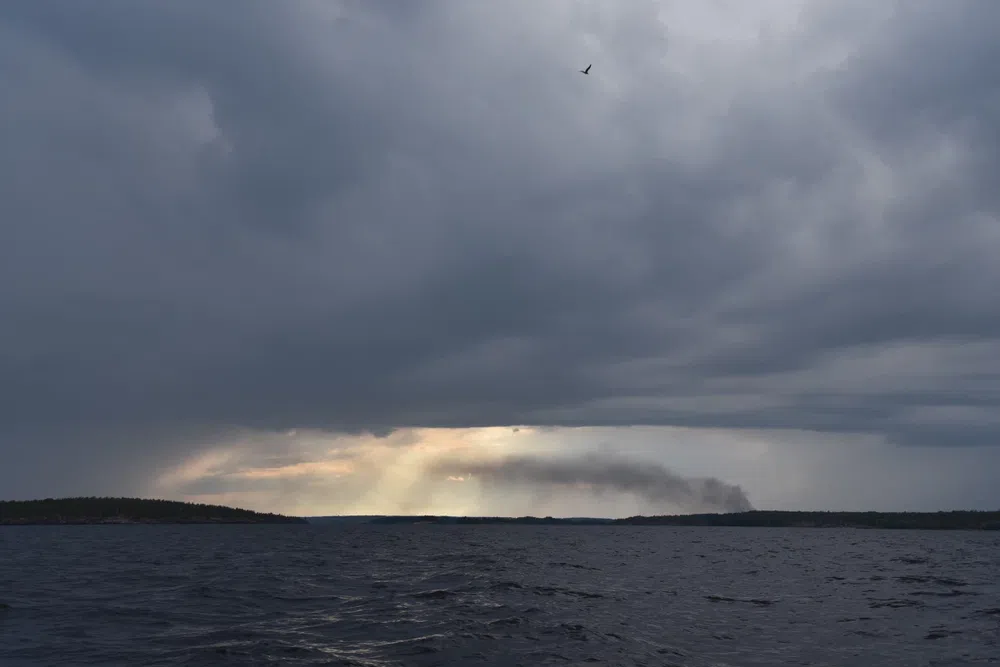 Горит не только Якутия. В этом году продолжительная жара высушила землю и растительность — огонь прилипает к ней мгновенно от любого источника. В начале июля тревогу забили и по поводу Ладожских шхер — нацпарка из 650 островов на Ладожском озере (шхеры — архипелаг, состоящий из мелких скалистых островов). Чтобы добраться до пожарного лагеря на острове, нужно доехать сначала до Приозерска (Ленобласть), а оттуда около часа пройти на моторной лодке. Нас встречают два суровых пожарных, упаковывают вещи в гермомешки, советуют одеться потеплее. На улице жара, но Ладога не улица, на открытой воде холодно и ветрено.