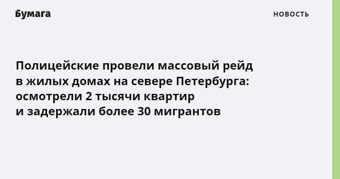 Петербургская полиция провела масштабный рейд в Калининском районе, в ходе которого осматривала квартиры в жилых домах. Об этом «Бумаге» сообщили в пресс-службе ГУ МВД по Петербургу.