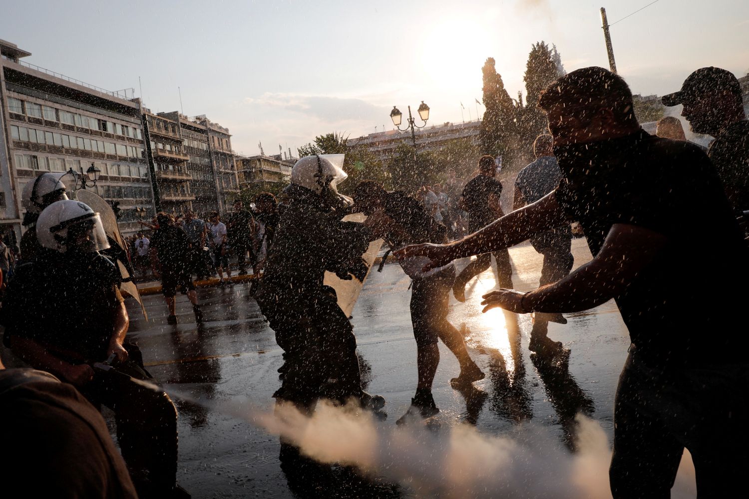 В июле во многих странах Европы вступили или в ближайшее время начнут действовать новые ограничения, направленные на борьбу с коронавирусом. Так, например, во Франции с 21 июля посещение общественных мест возможно только с сертификатом о вакцинации или отрицательным тестом, в Италии сертификат о прививке или тест с 6 августа будет необходимы для того, чтобы поесть в зале кафе или ресторана, сходить в спортзал или музей. Новые меры поддержали не все жители, во Франции и Италии, а также в Греции и в Великобритании прошли массовые акции протеста против новых ограничений и вакцинации. Вот лишь некоторые фото с таких акций.