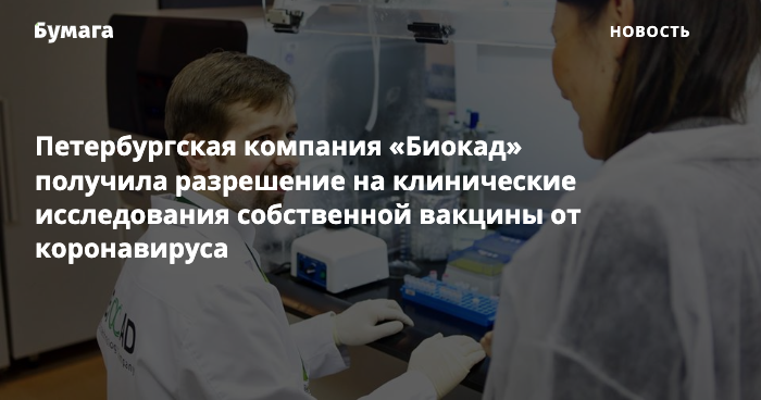 Петербургский «Биокад» получил разрешение на клинические исследования вакцины от коронавируса