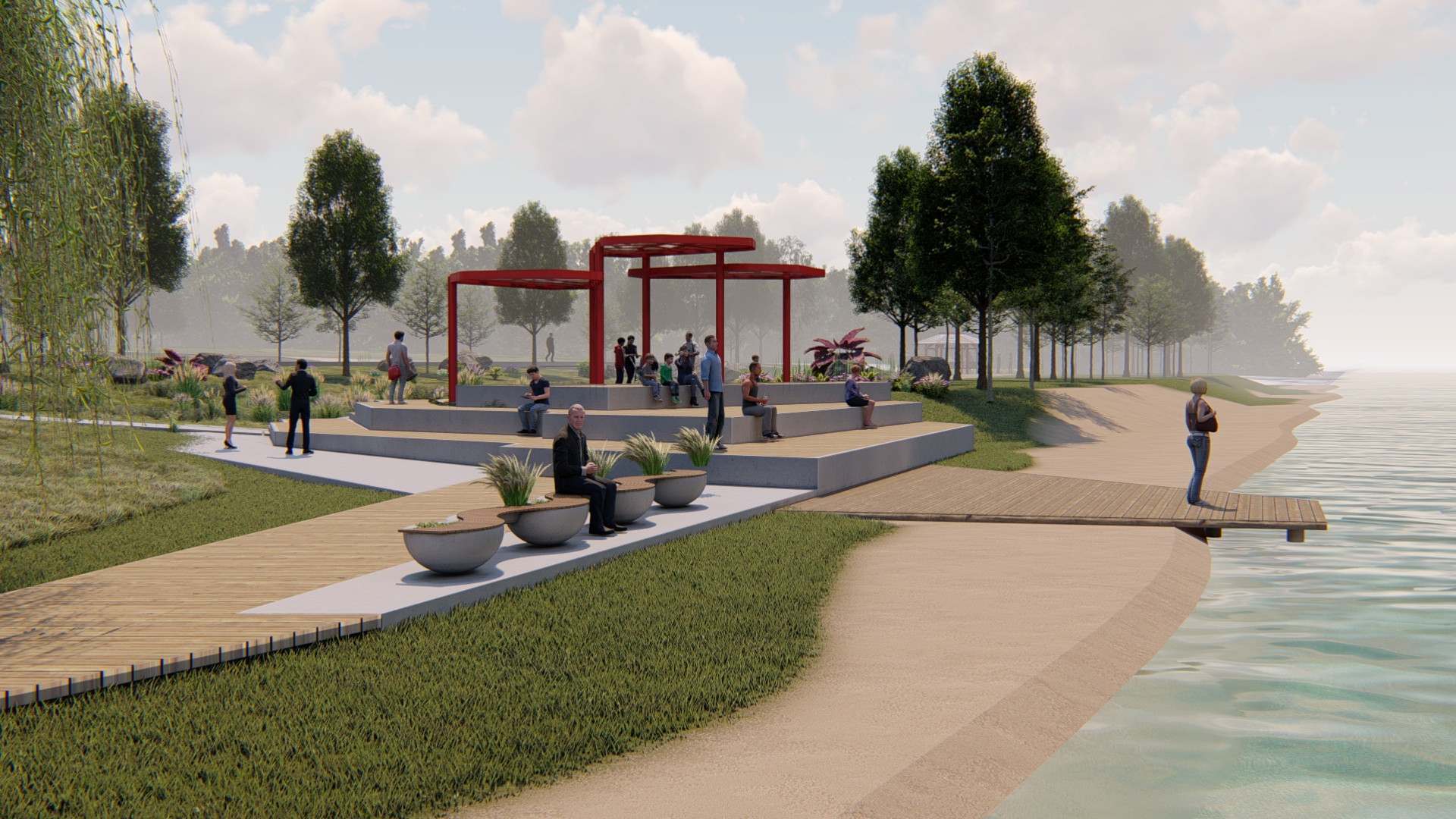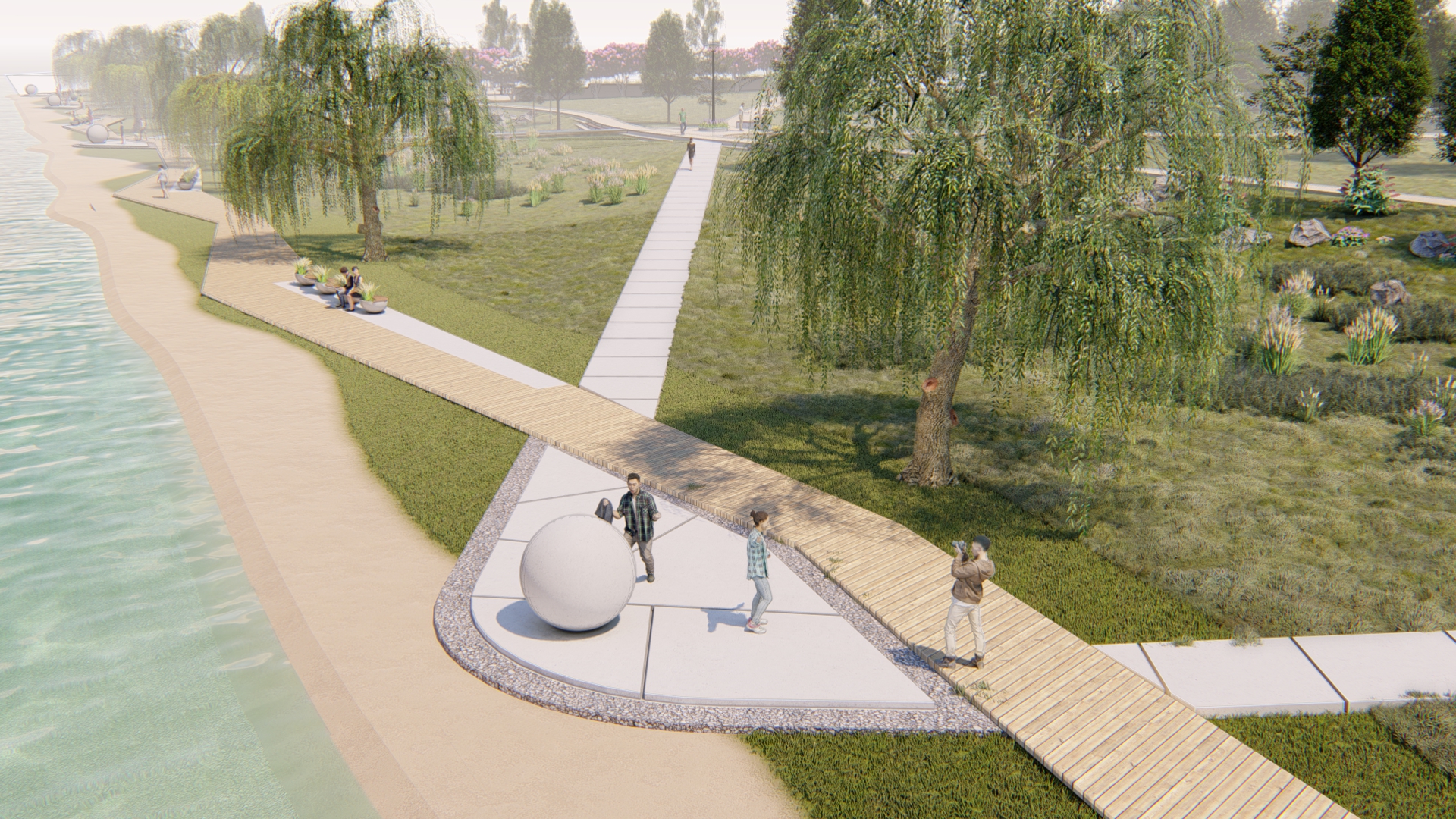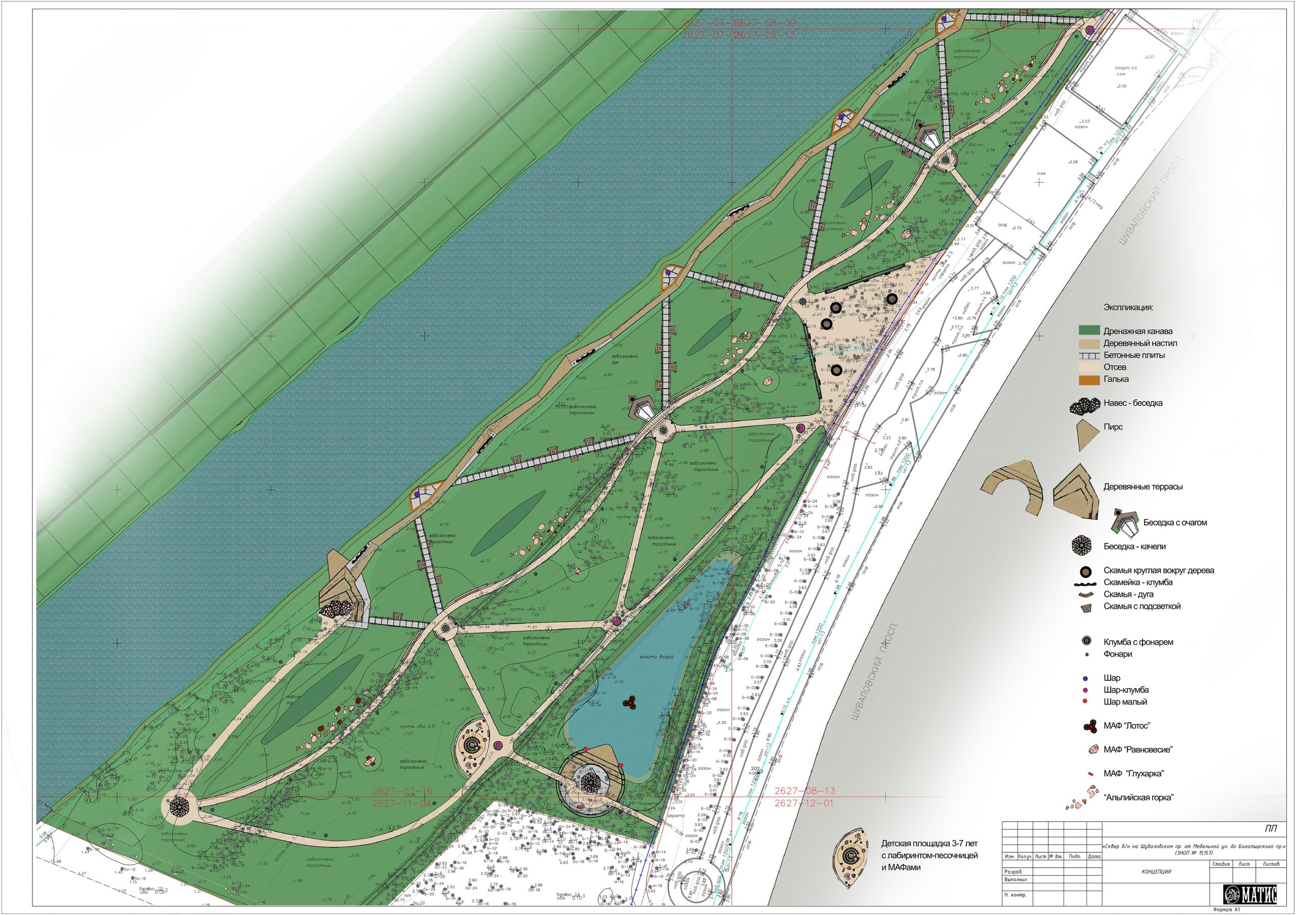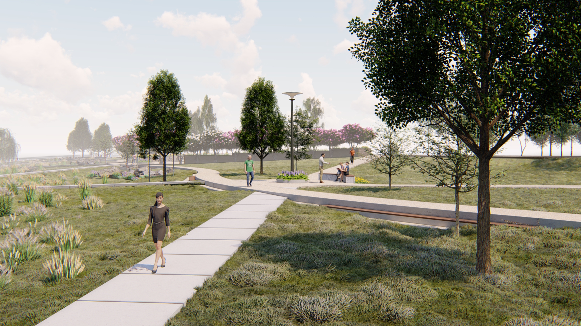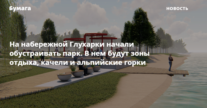 В парке будет входная площадка в форме треугольника, скамейки, детская зона. На его территории высадят сирень и многолетние низкорослые кустарники. На набережной Глухарки положат террасную доску, установят беседки с качелями и навес. Парк обещают оборудовать подсветкой.