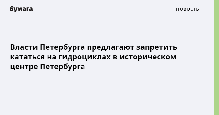 Власти Петербурга намерены запретить плавание на гидроциклах в историческом центре Петербурга. Это следует из проекта постановления, опубликованного 27 июля на сайте правительства города.