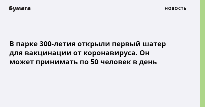 В парке 300-летия Петербурга открыли первый уличный шатер для вакцинации от коронавируса. Об этом пишет ТАСС со ссылкой на врача-методиста городского центра медицинской профилактики Андрея Бережного.