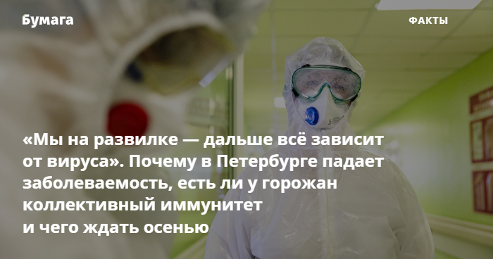 По словам Барчука, Петербург как никогда близок к ситуации, при которой большинство горожан переболело или вакцинировалось. Но что будет дальше — неизвестно. «Сейчас мы на развилке — и многое зависит уже не от нас и не от мер, — говорит Барчук. — Дальше всё зависит от вируса. От его свойств и свойств иммунной защиты».