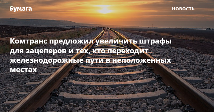 Комитет по транспорту Петербурга предлагает внести изменения в некоторые статьи кодекса об административных нарушениях. Ведомство хочет повысить штрафы для зацеперов, а также тех, кто переходит железнодорожные пути в неустановленных местах. Проект соответствующего постановления опубликован на портале антикоррупционной экспертизы.