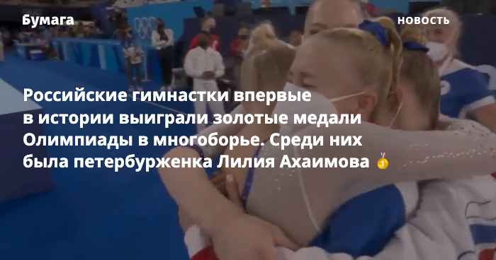Российские гимнастки впервые в истории выиграли золотые медали Олимпиады в многоборье. Среди них была петербурженка Лилия Ахаимова. Об этом сообщает ТАСС.