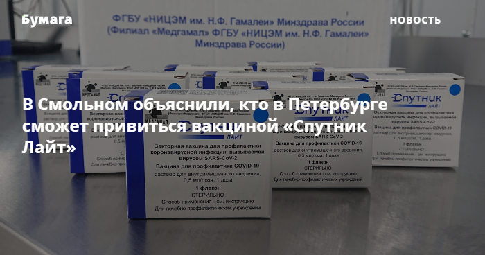 В Смольном объяснили, кто в Петербурге сможет привиться вакциной «Спутник Лайт»
