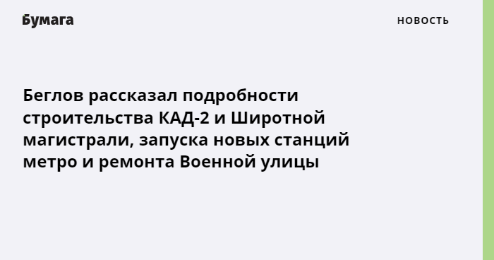Беглов — о КАД-2, Широтной магистрали и других важных объектах. «Бумага»