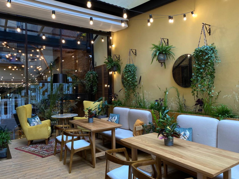 Пространство украсили живыми растениями, гостям подают блюда пьемонтской кухни и итальянские коктейли из основного меню заведения.