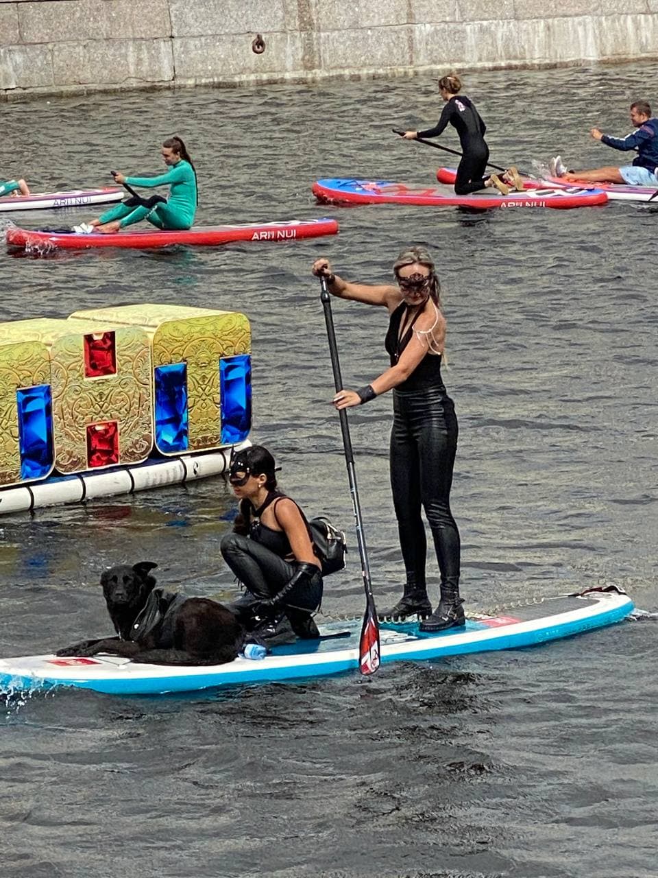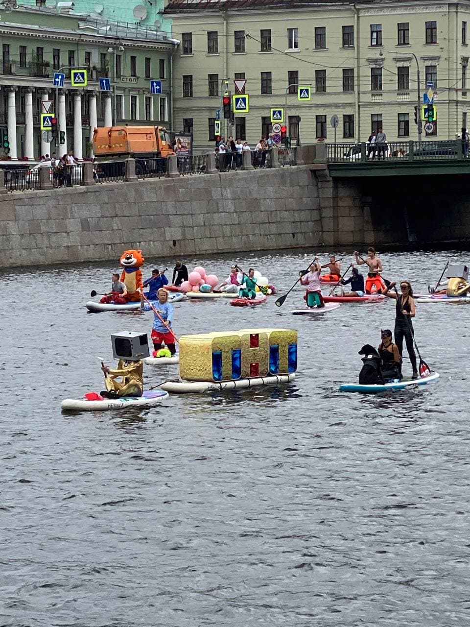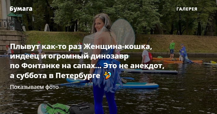 По рекам и каналам Петербурга утром 31 июля проплыли сотни человек в костюмах Женщины-кошки, статуи Свободы, Сейлор Мун и Деда Мороза, а также в образах шаманов, индейцев, феи и священников. Некоторые горожане встали на сапы вместе с собаками. Все они участвовали в ежегодном фестивале «Фонтанка-SUP» от интернет-издания «Фонтанка».