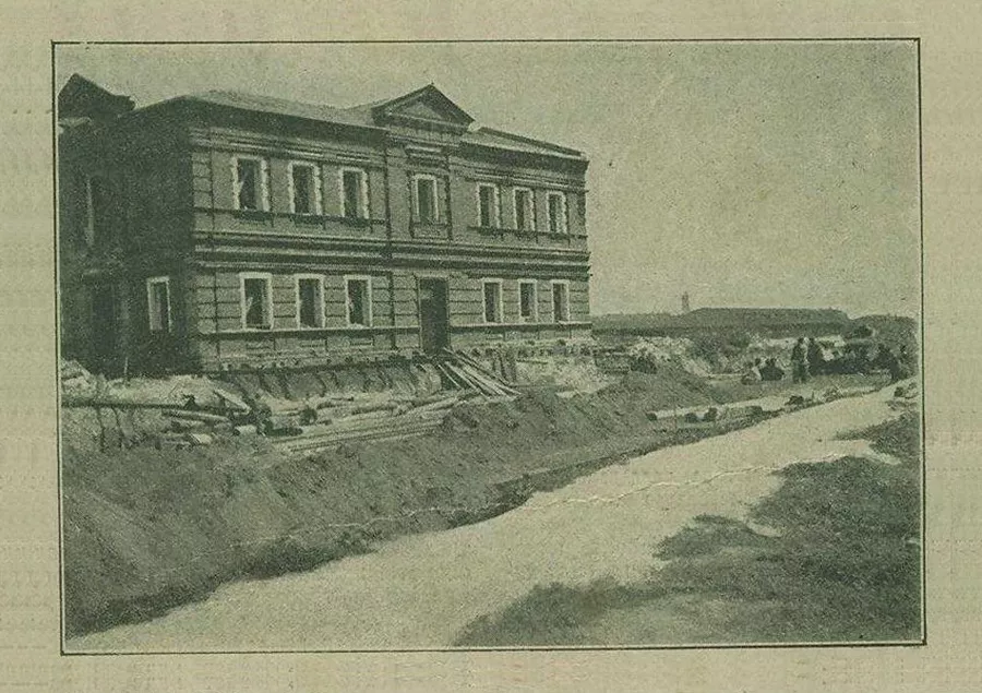 По технологии инженера И. М. Федоровича при участи ста человек за несколько дней здание передвинули на сто метров. Помимо прочего, в журнале « Нива » писали, что «для уменьшения тяжести здания штукатурка отбита; сняты все перегородки, двери, пол также вынуты». Это был первый и единственный случай передвижки каменного здания в истории царской России.