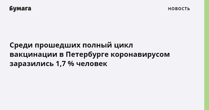 Коронавирусом заразились 1,7 % привившихся в Петербурге