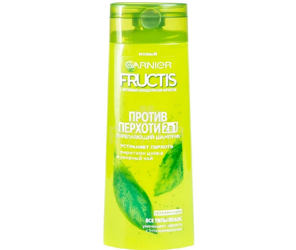 Бюджетный шампунь от перхоти с ухаживающей формулой. Предназначен для всех типов волос. Совмещает в себе свойства шампуня и кондиционера: мягко очищает, увлажняет и смягчает волосы. Благодаря пиритиону цинка помогает справиться с перхотью и ее повторным появлением. Салициловая кислота и экстракт листьев зеленого чая обладают антисептическим и себорегулирующим действием. Активный концентрат фруктов и витамины способствуют укреплению и здоровому росту волос.