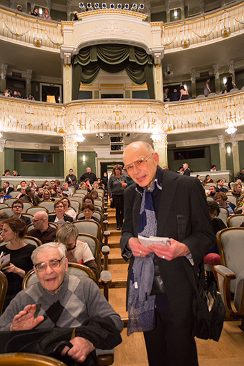 Позволю себе приложить к этим нескольким словам фотографию, которую замечательный фотограф Михаил Логвинов сделал несколько лет назад во время антракта спектакля на Новой сцене Большого театра, когда я подошел к Вадиму Моисеевичу, чтобы его приветствовать.