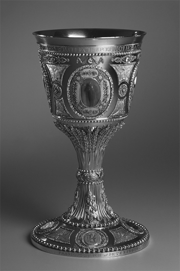 © Музей Хиллвуд, Вашингтон Чаша. Мастер Фридрих Венфельдт Бух (Ивер Финфельд Бух). Петербург. 1791. Золото, бриллианты, халцедон, гелиотроп, нефрит, сердолик, литое стекло. Высота 33, диаметр 18Куплено Марджори Пост в комиссионном магазине в Москве в 1933–1937 годах После развода в 1955 году с Дэвисом Марджори Пост купила 25 акров земли с домом в георгианском стиле, ставших одним из самых дорогих поместий Вашингтона. В 1968 году Марджори Пост передала свою коллекцию и имение в Хиллвуде Смитсоновскому институту. Последним и наиболее важным благотворительным жестом Марджори Пост было открытие публичного музея ее имени — «для удовольствия и просвещения публики». Это единственный в Америке музей русской старины, и мало где за пределами России русское декоративно-прикладное искусство представлено столь эффектно и разнообразно…