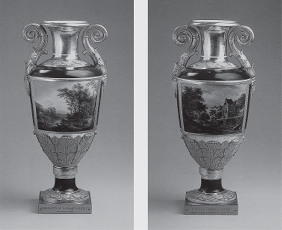 Также из ленинградского магазина «Антиквариат» была привезена пара золоченых ваз Императорского фарфорового завода (конец 1830-х годов), украшенных фризом с изображением голубей.