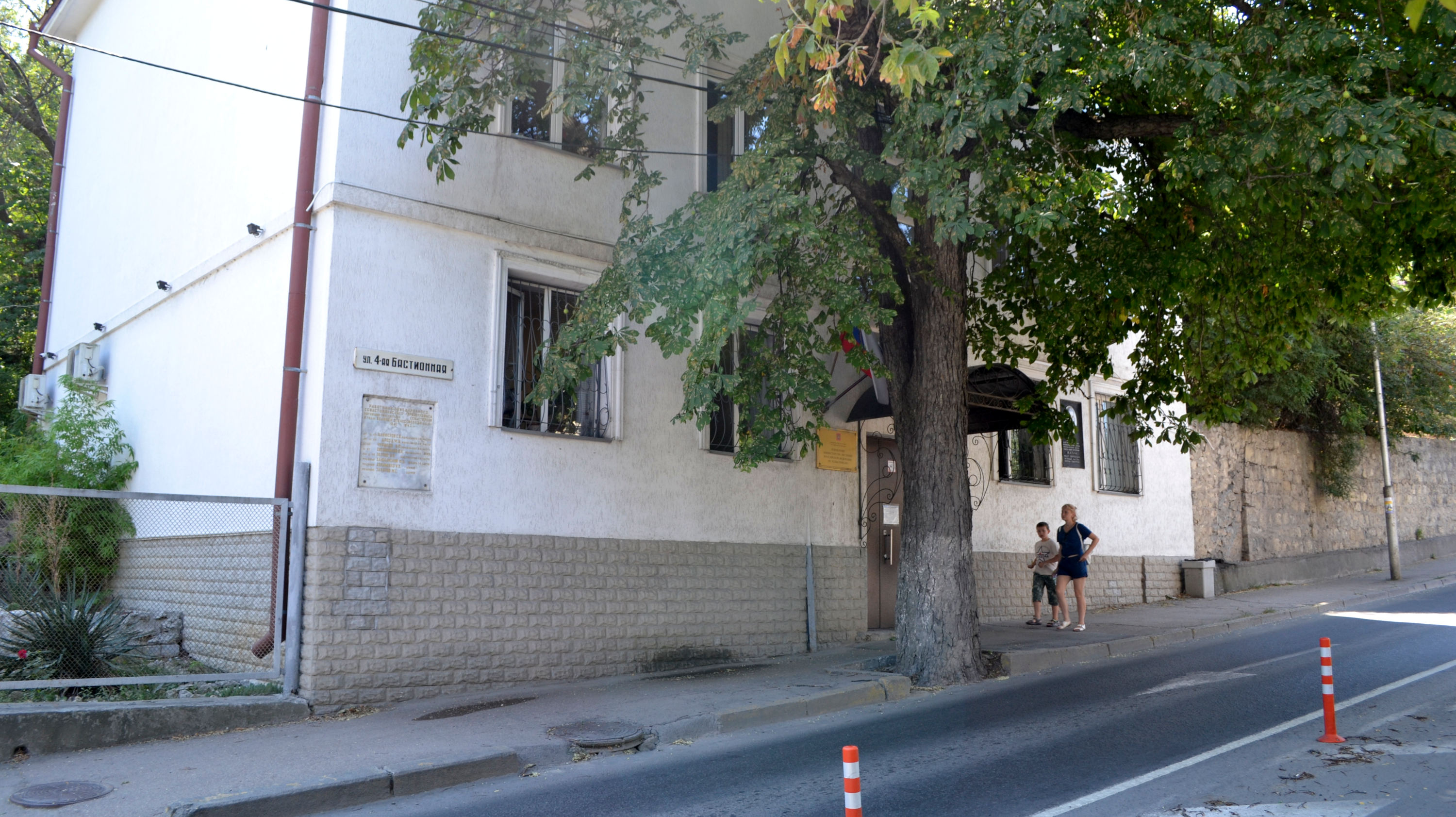 Под номером один на 4-й Бастионной здание городской телерадиокомпании, в архитектурном плане совершенно неинтересное – двухэтажное здание слегка позорит своим присутствием как улицу, так и площадь. 4-я Бастионная, №3 – это здание управления юстиции, с советского времени до начала 2000-х в нем располагался военный комиссариат Ленинского района Севастополя. На мемориальной табличке – список сотрудников Севастопольского объединенного горвоенкомата, погибших в годы Второй мировой при обороне города.