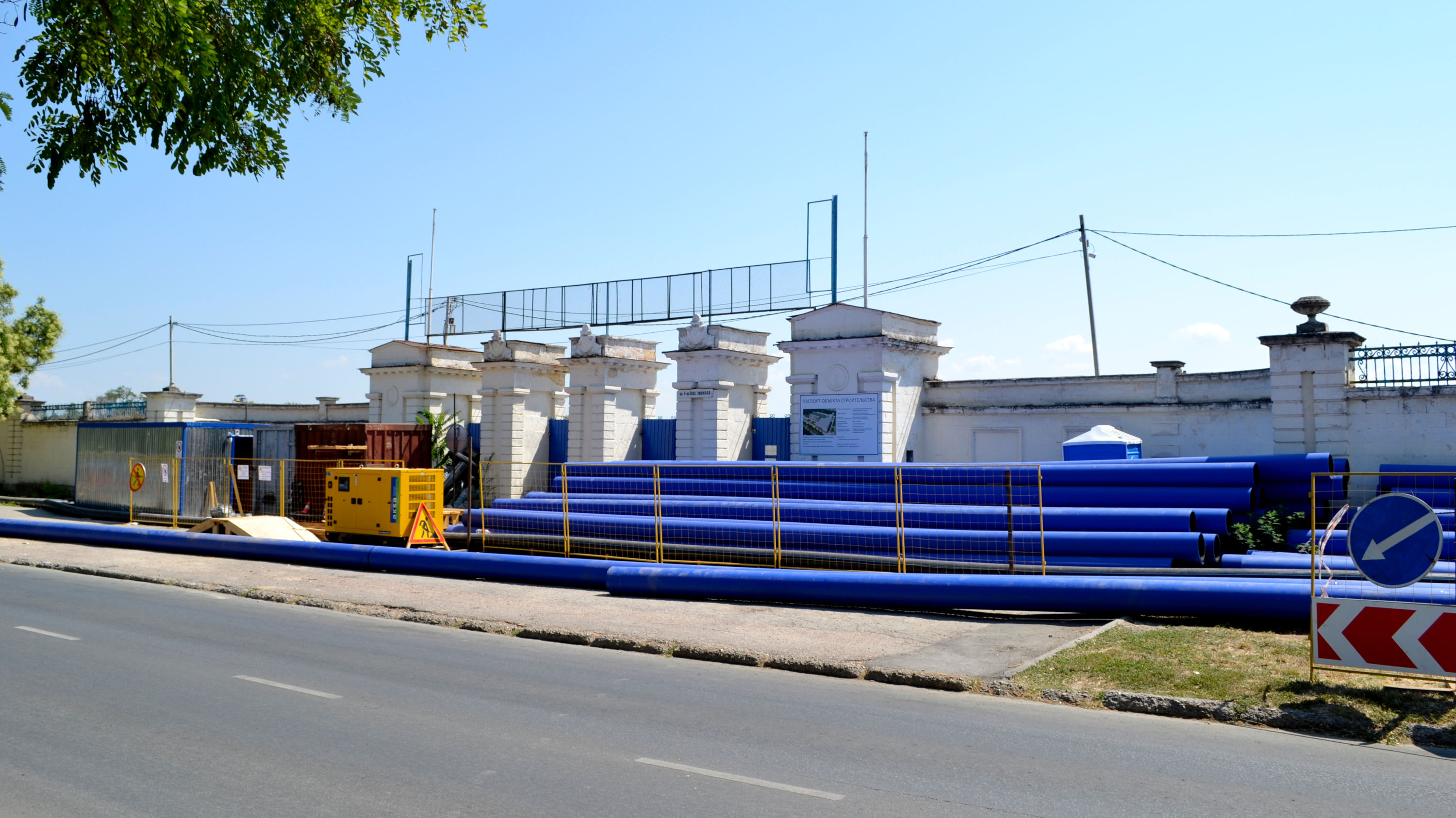 Напротив ВАИ – стадион Черноморского флота. Десятки лет он был в запустении, в 1990-х и начале 2000-х на нем еще проводили рок-концерты, но потом и эта деятельность заглохла. В 2010 году был проект по его застройке, но спортивное сооружение удалось отстоять. У главного входа сейчас сложены трубы для ремонта магистрального водопровода, проходящего мимо стадиона.