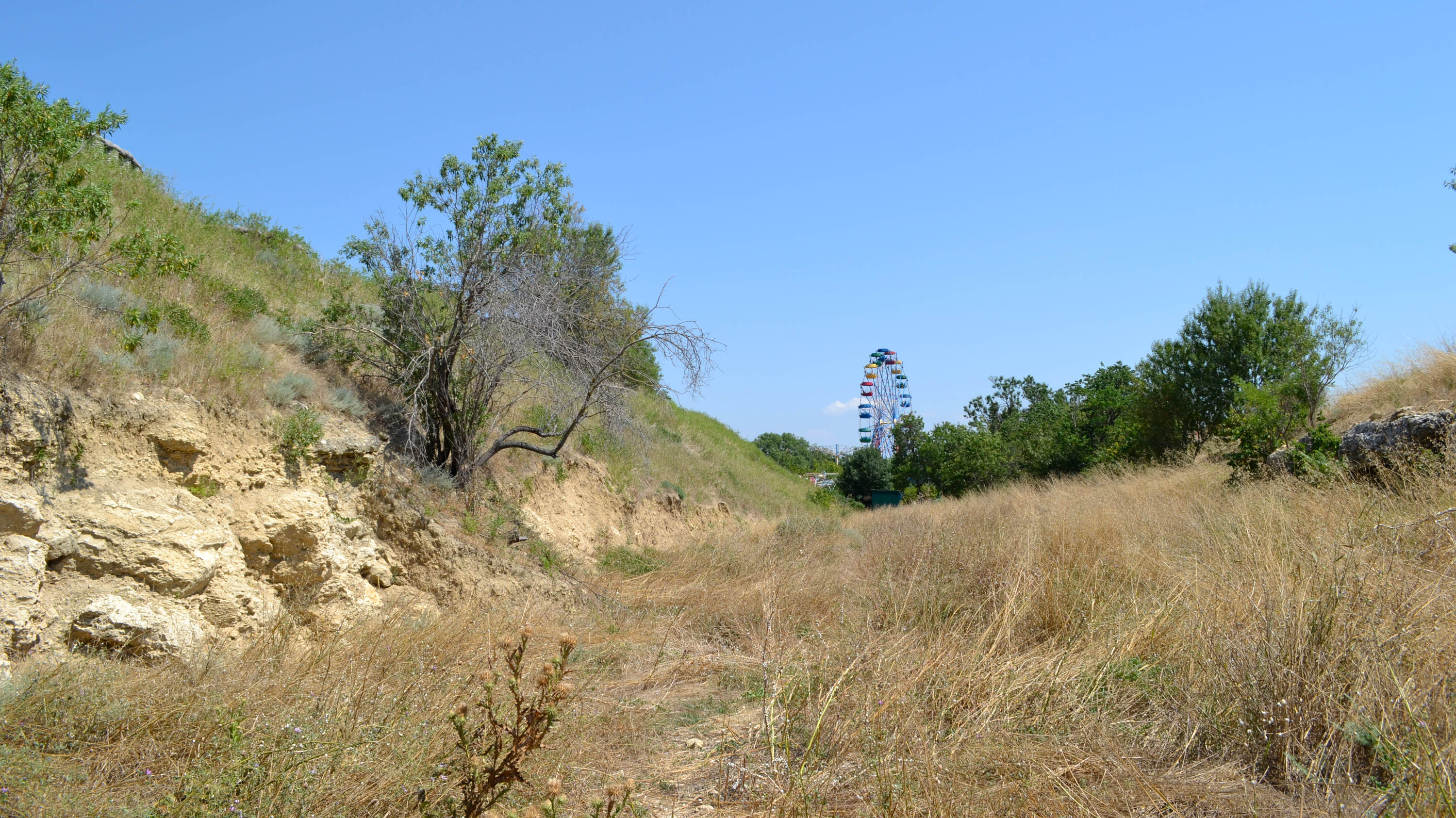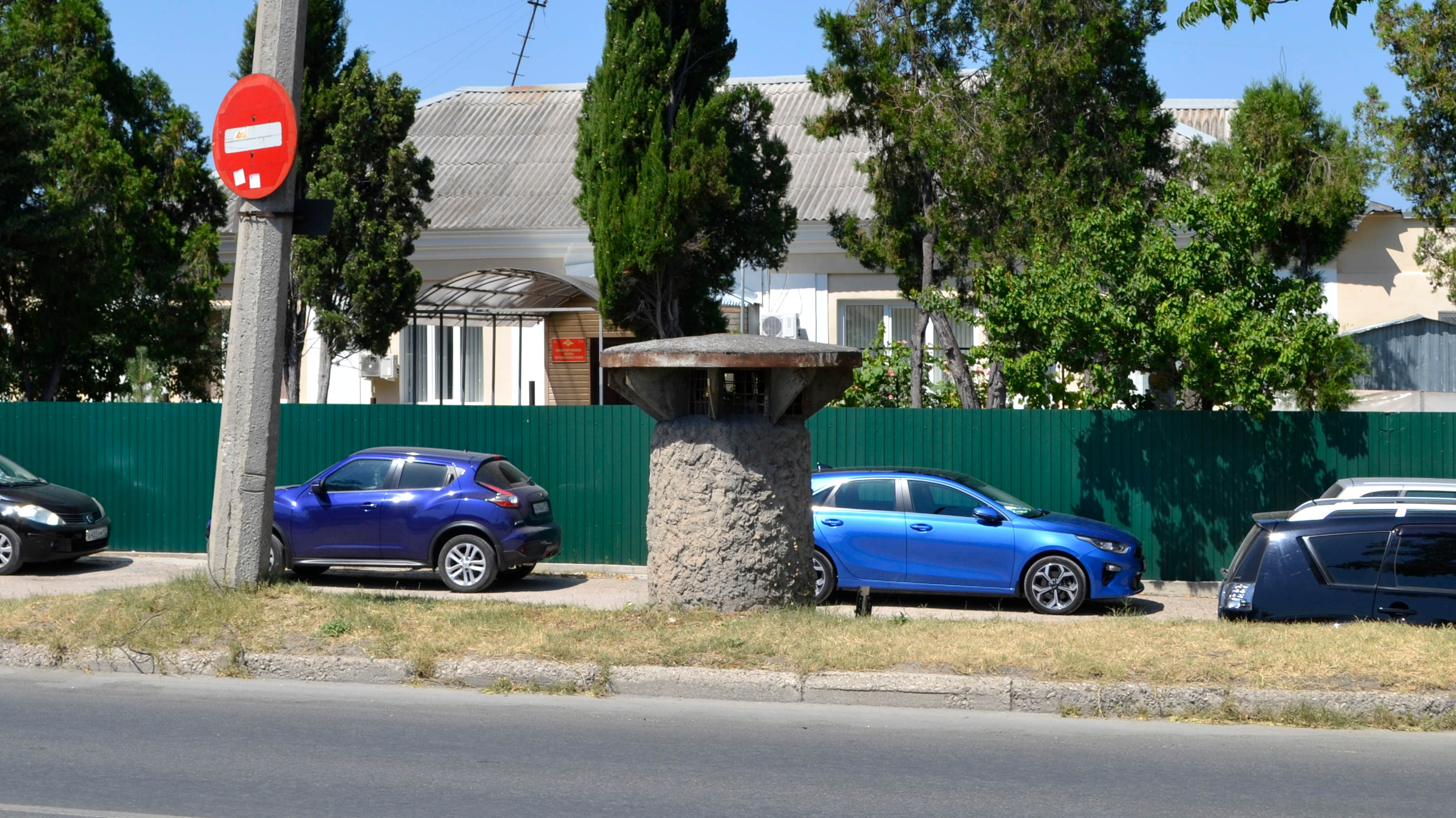 На газоне у дороги стоит странный «гриб» – это выход вентиляционной шахты какого-то подземного сооружения. Похожие, кстати, есть и на расположенном рядом Историческом бульваре. Как мне рассказывали знающие люди, некоторые вентиляционные выходы имеют отношение к заводу шампанских вин, который находится на улице Портовой.