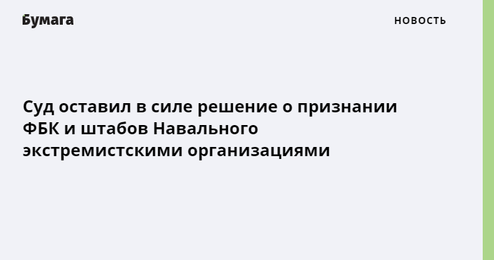 Первый апелляционный суд общей юрисдикции в Москве подтвердил, что Фонд борьбы с коррупцией Алексея Навального и штабы политика законно признали экстремистскими организациями. Об этом сообщается в телеграм-канала адвоката Ивана Павлова.