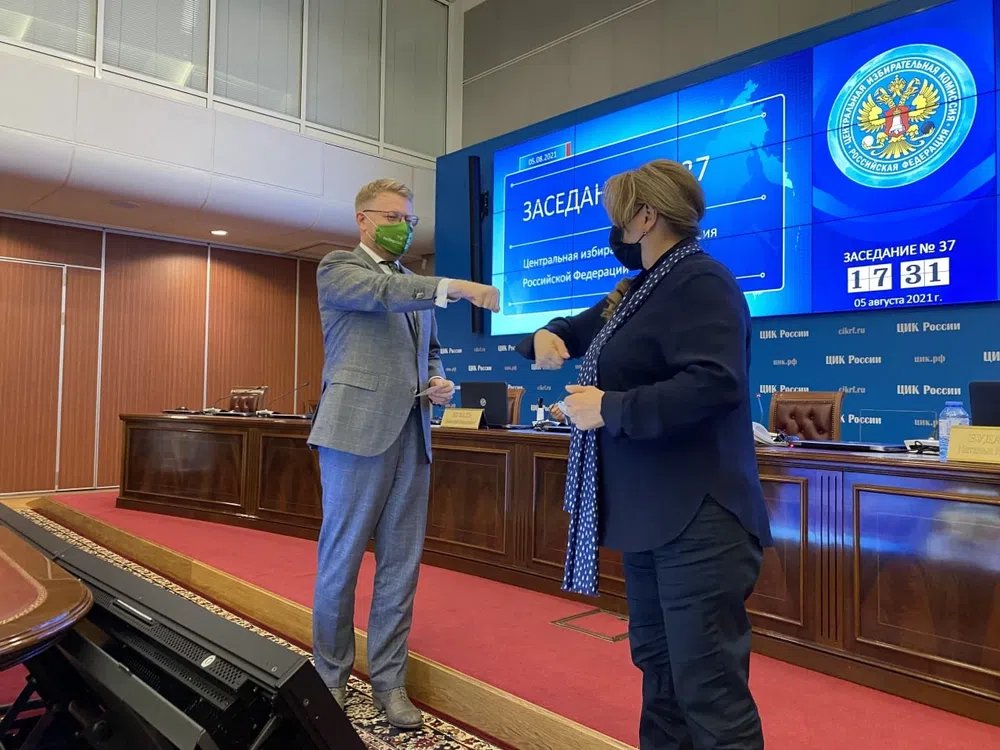 За регистрацию партии проголосовали 12 членов комиссии, двое выступили против. После голосования глава ЦИК Элла Памфилова вручила председателю «Яблока» Николаю Рыбакову удостоверение кандидата в депутаты.