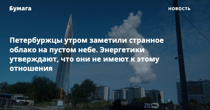 В ТГК-1 «Бумаге» сообщили, что не имеют отношения к ситуации и добавили, что это просто облако. «Бумага» также отправила запрос в пресс-службу «Интер РАО», которая управляет Северо-Западной ТЭЦ в Конной Лахте, но к моменту публикации новости не получила ответа. Однако «Фонтанка» со ссылкой на пресс-службу организации написала, что выбросов пара в Лахте не происходило.
