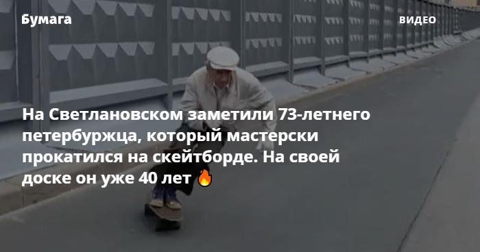 На пересечении Светлановского проспекта и проспекта Тореза пожилой петербуржец мастерски прокатился на скейтборде. Видео с ним в инстаграме опубликовал серфер Макс Тимухин.