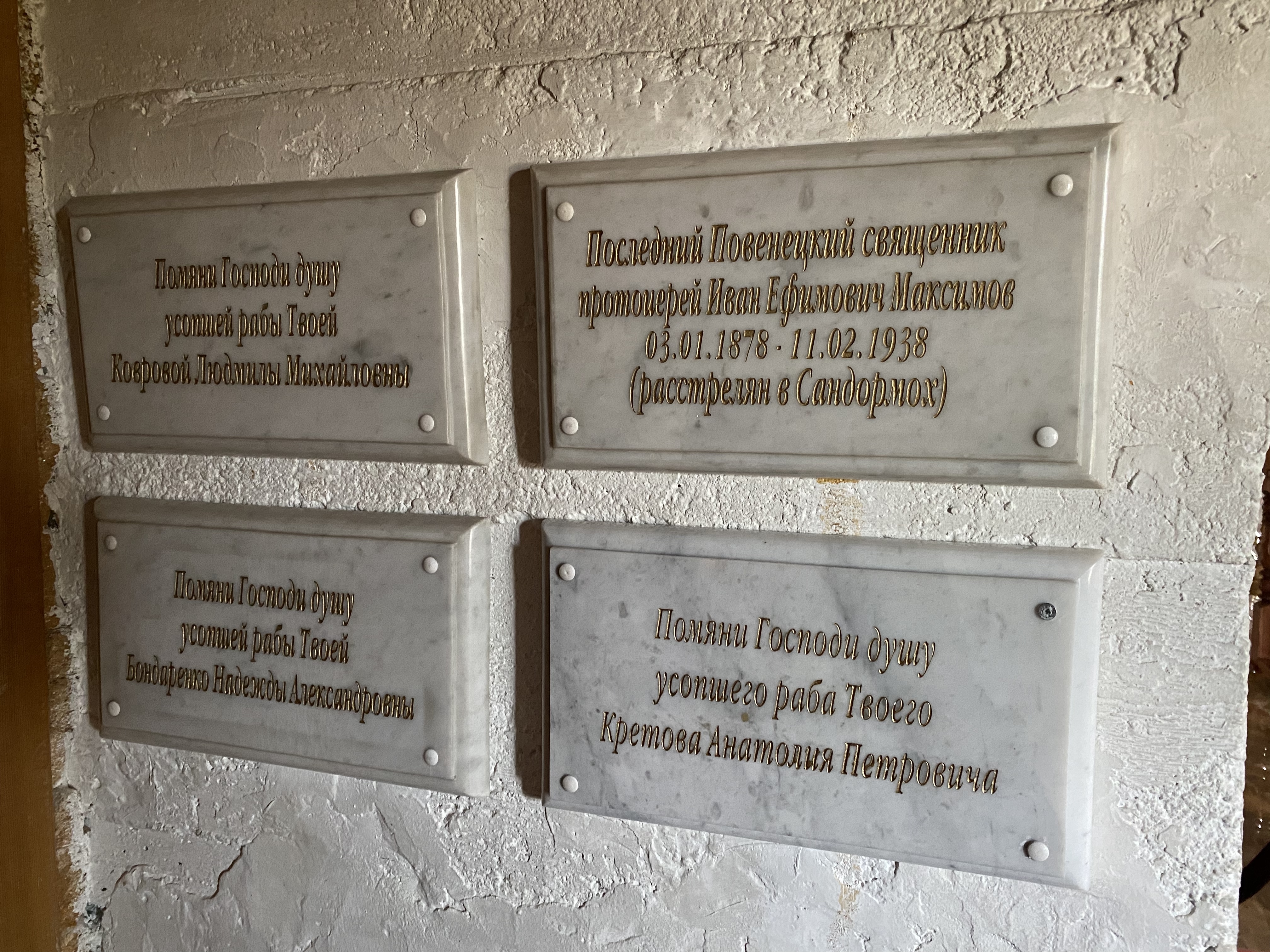 Кроме самого ББК, о его истории в Повенце напоминает недавно открытый в здании местной администрации "Музей истории беломорско-балтийского водного пути" и храм Святителя Николая, построенный на берегу канала в 2004 году в память строителей ББК. Архитекторы старались сделать так, чтобы внешний вид храма напоминал сооружения Беломорканала – сочетание дерева и бетона. Впрочем, внутри храма мало что напоминает о каналармейцах. По словам свечницы, строителей ББК неизменно поминают в службах, как и другие жертвы Большого террора, среди которых – последний Повенецкий священник первой половины ХХ века протоиерей Иван Максимов, расстрелянный в Сандармохе в феврале 1938 года. Впрочем, сейчас в храме о них не напоминает ничего, кроме мраморной таблички у входа. В самой же церкви, по обе стороны от входа в алтарную часть, под российским триколором, хранятся не останки строителей ББК, тысячами разбросанных по обеим сторонам "водного пути", а черепа бойцов Красной Армии, павших в боях за Медвежьегорск в годы Великой Отечественной войны.