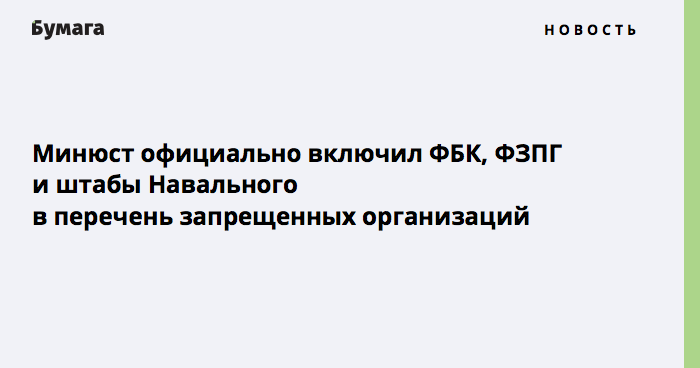 Минюст официально включил ФБК, ФЗПГ и штабы Навального в перечень запрещенных организаций